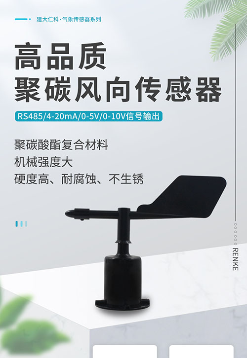 采用聚碳型材制造的風向傳感器,耐老化,防腐防銹能力相對ABS塑料更強,使用周期更長,穩定性更好,高承受力,體積小,外觀精美。8個指示方向、16個指示方向或0~360°