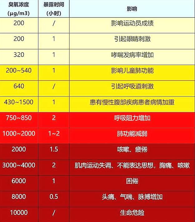 3.臭氧會造成人的神經中毒,頭暈頭痛、視力下降、記憶力衰退、呼吸短促、疲倦、鼻子出血;