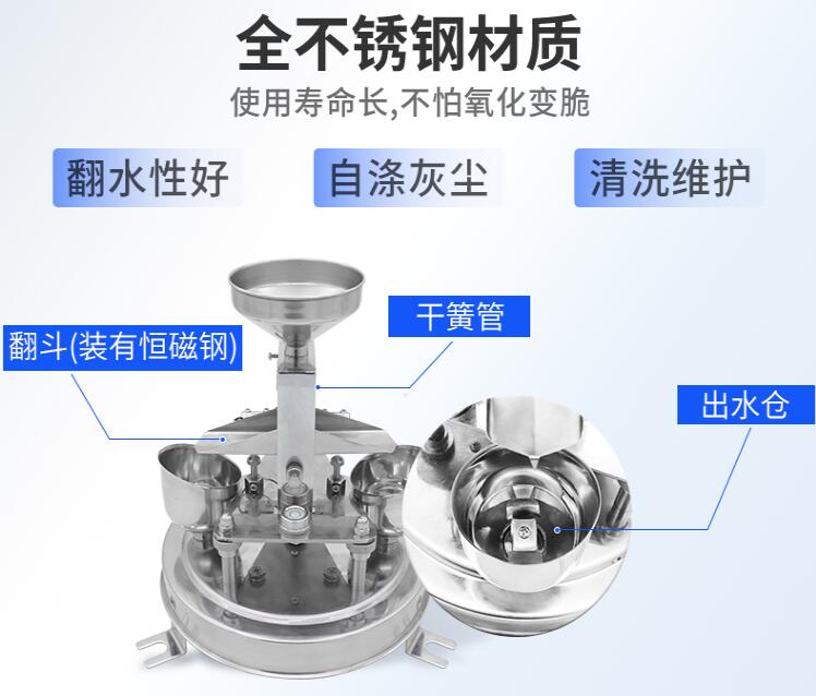 目前,氣象、水文用來測雨量的工具主要是翻斗式雨量計。這種測量器將接收到的降雨流入一個小斗內,達到一定的數量后就自動倒掉,同時形成相應的雨量記錄。氣象所用的是0.1毫米的翻斗式雨量傳感器,而水文用的則是0.5毫米的。