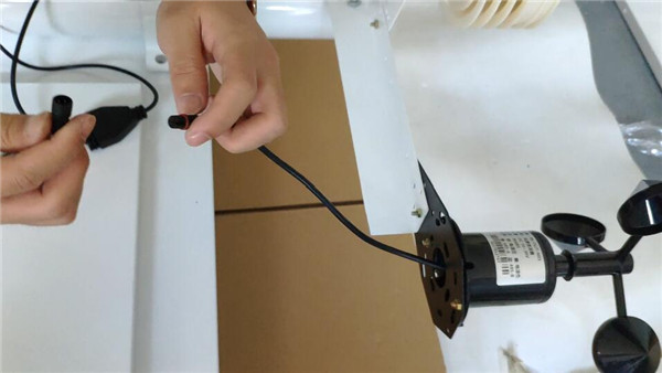 配件里面會有一根一拖三的線,三頭依次插在風向傳感器、百葉盒多合一變送器、風速傳感器上(接頭可隨便插3根線并無區(qū)分),另一頭安裝在箱子底部線口處。
