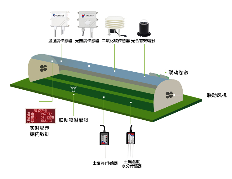 溫室大棚環境監測系統各項傳感器的功能: