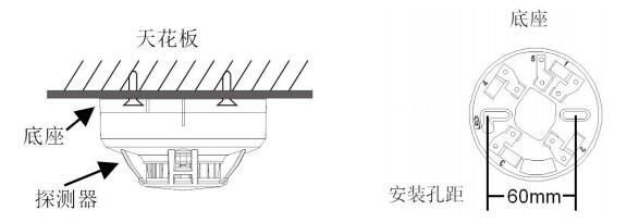 首先,選擇合適的安裝位置,一般安裝在房間中間區域的天花板上;其次用螺絲將安裝底座固定在天花板上,最后選擇10~30V電源供電,并進行一次模擬火警試驗,測試探測器能否正常使用。