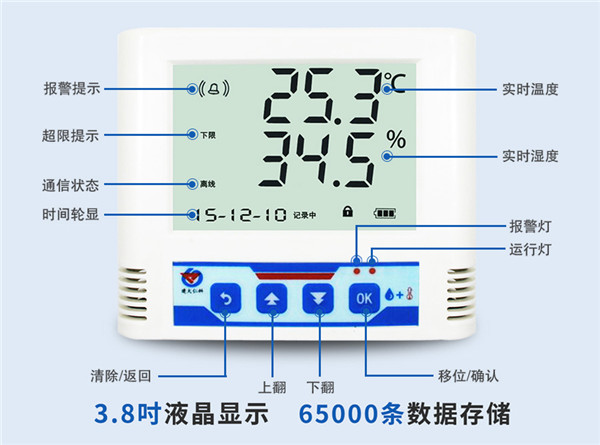 同時WIFI多探頭型溫濕度記錄儀上有四路溫濕度探頭可分別設置不同的溫濕度的上下限,并同時設有內置蜂鳴器,當實驗室溫濕度低于或超過所設閾值后報警燈亮起,蜂鳴器報警,提醒實驗室環境管理人員及時對室內環境進行調整。